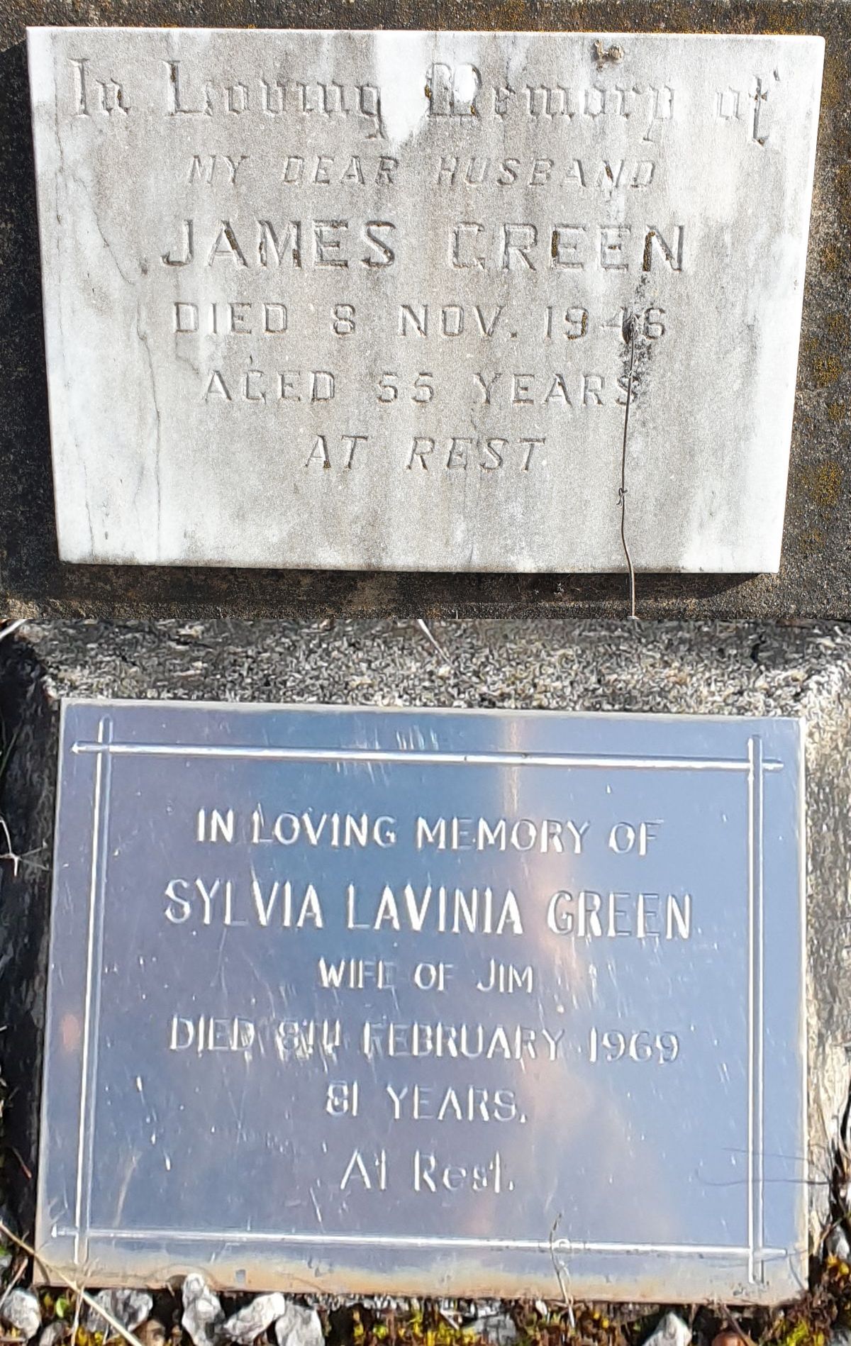 In Loving Memory ofMy Dear HusbandJames GreenDied 8 Nov 1946Aged 55 yearsAt Rest
