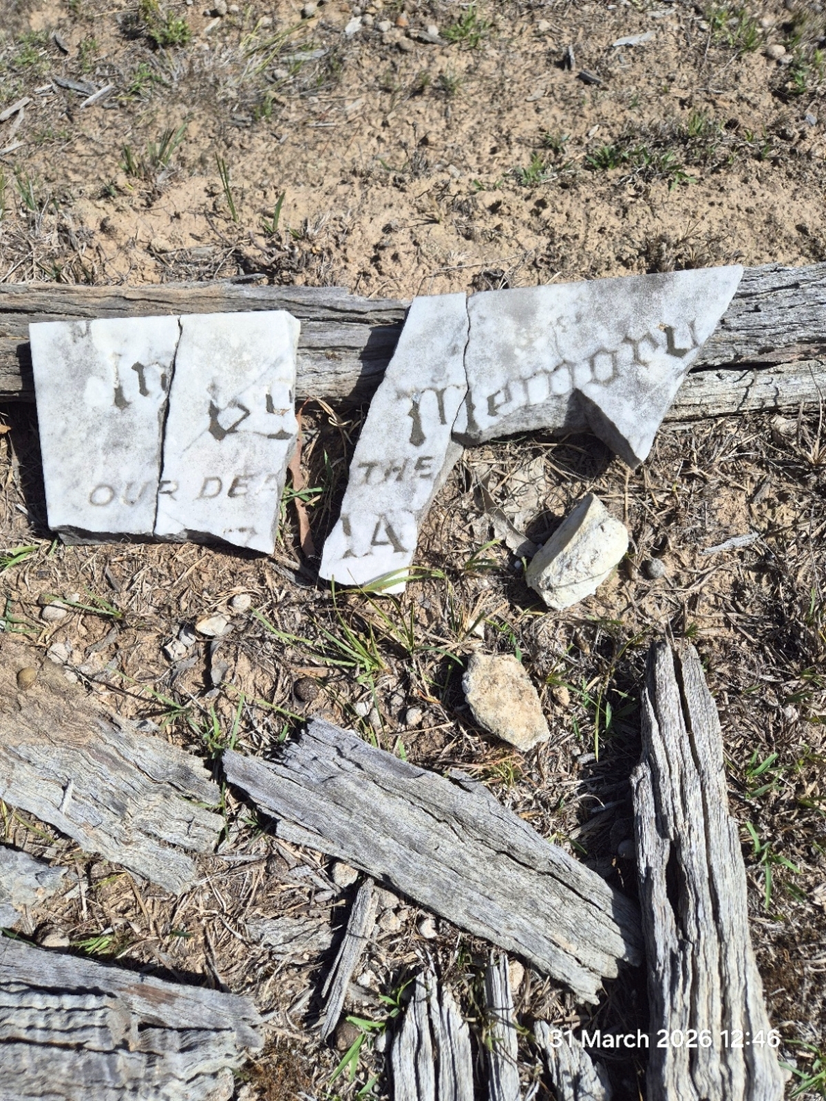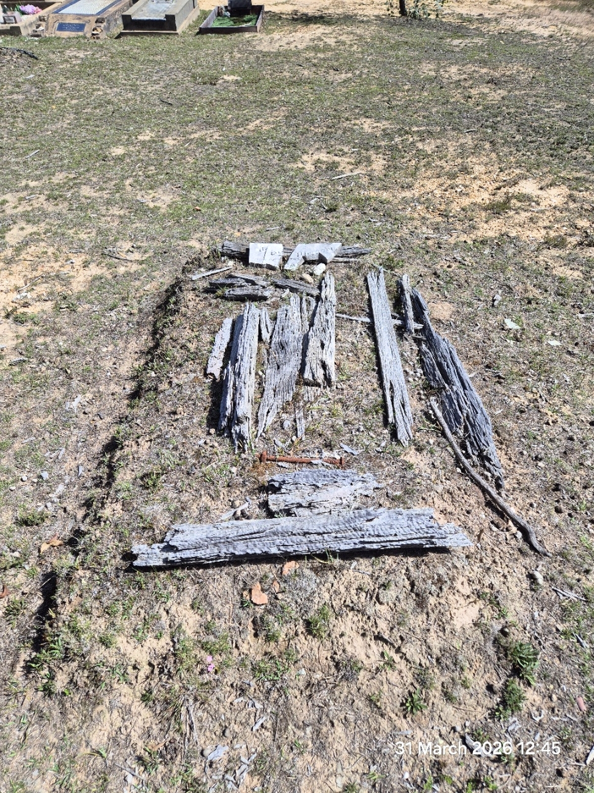 Remnants of a headstone and timber surround. The grave is based on the information provided by a NPWS plan and list created in 1975 of the cemetery, with comments by Red Jack Ellis and others. (929)