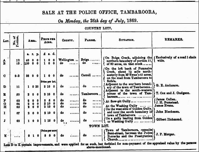 | Note 3: | 26 Jul 1869 - A Land Sale at Tambaroora saw the Lot advertised as Lot D (562) |