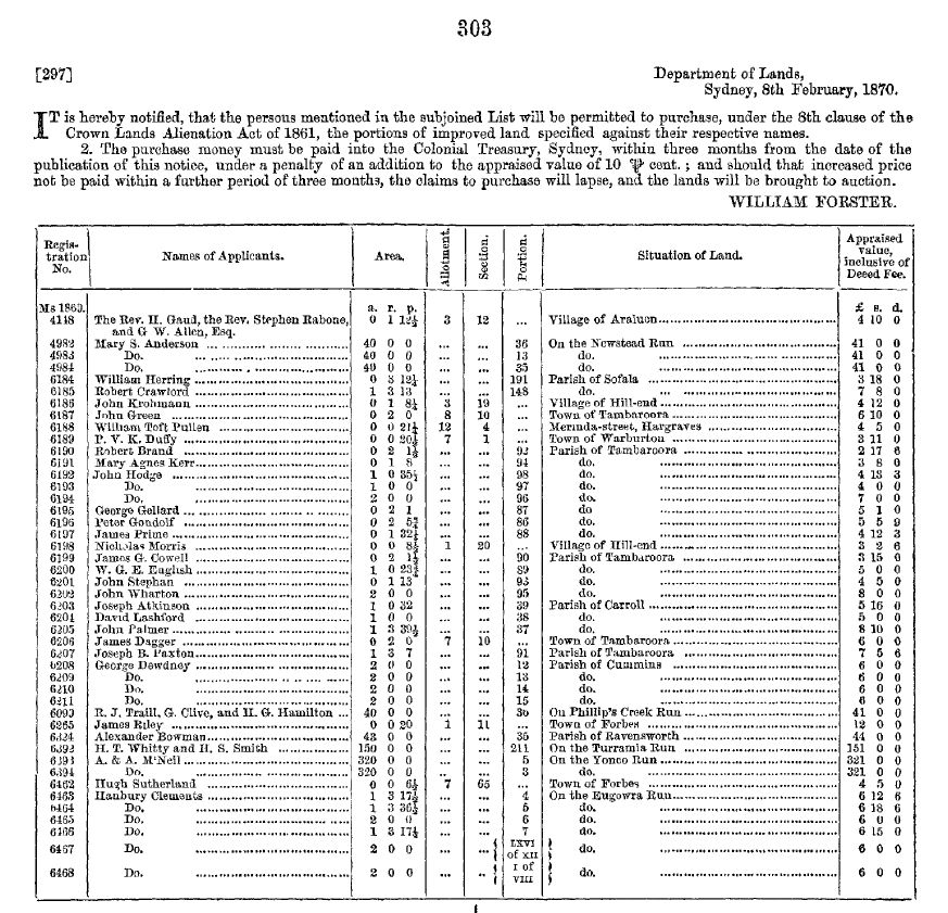 Extracted from the Digitized NSW Government Gazettes by TROVE, Courtesy of the National Library of Australia