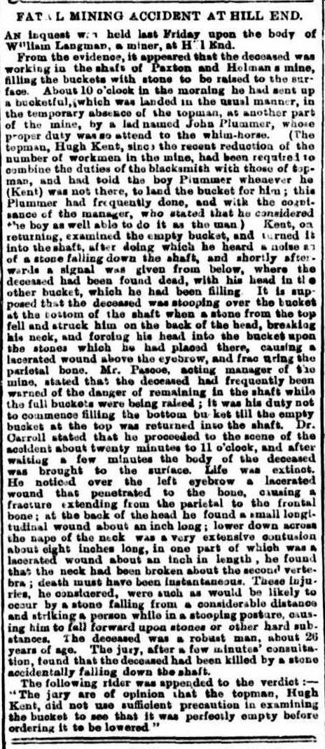 Source: (001 ) Pg.3, 22 Oct 1873 Event Date: 17 Oct 1873 Paxton and Holmans Mine