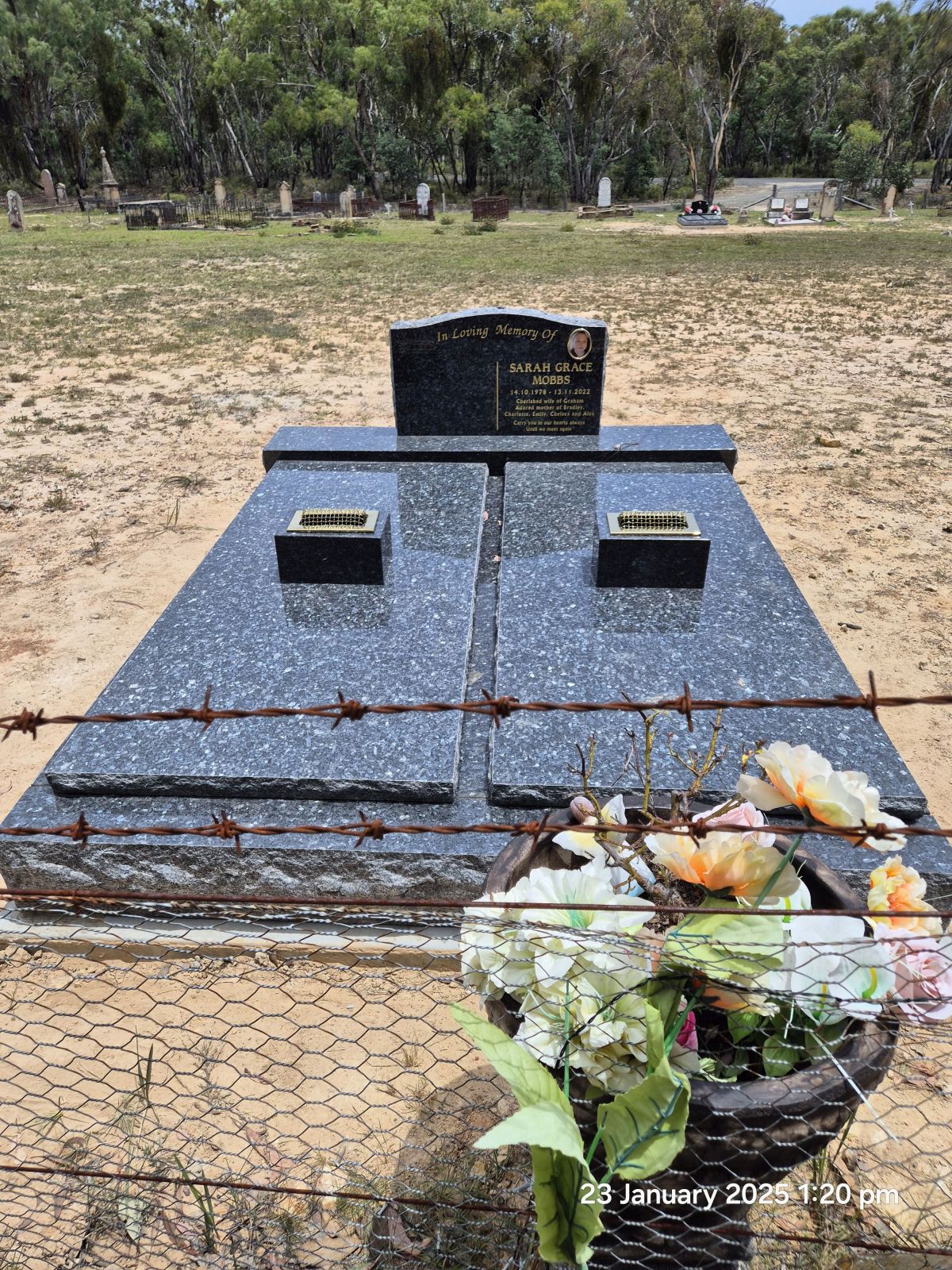 The overhead image precedes the grave site and does not show the grave but its location is correct