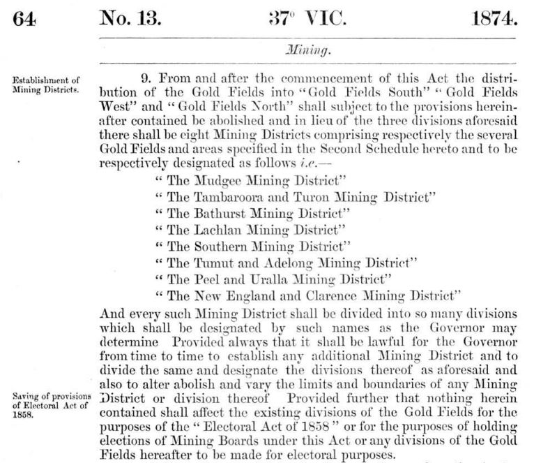 Extracted from the Digitized Mining Act 1874, NSW Government, NSW Legislation